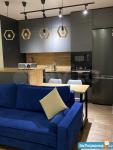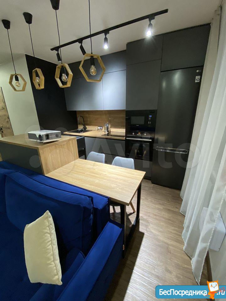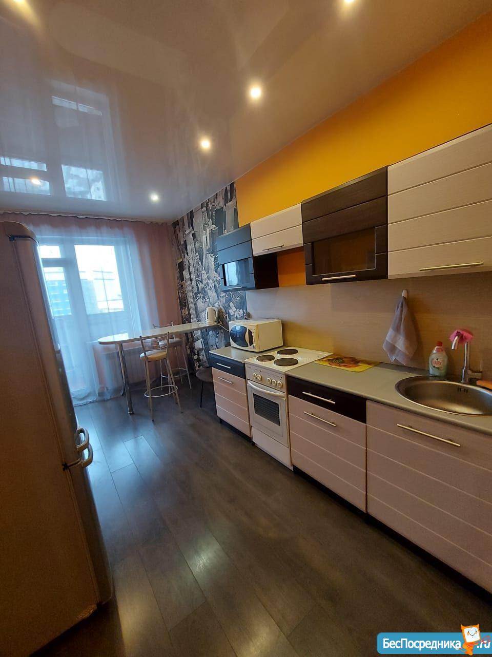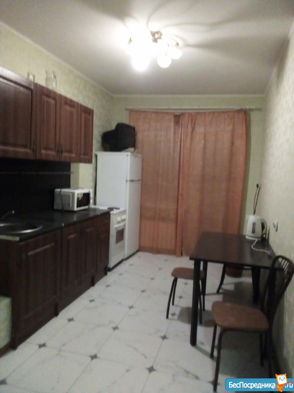 В наличии кухонный гарнитур, диван, холодильник, микроволновка, чайник, телевизор, шкаф-купе.