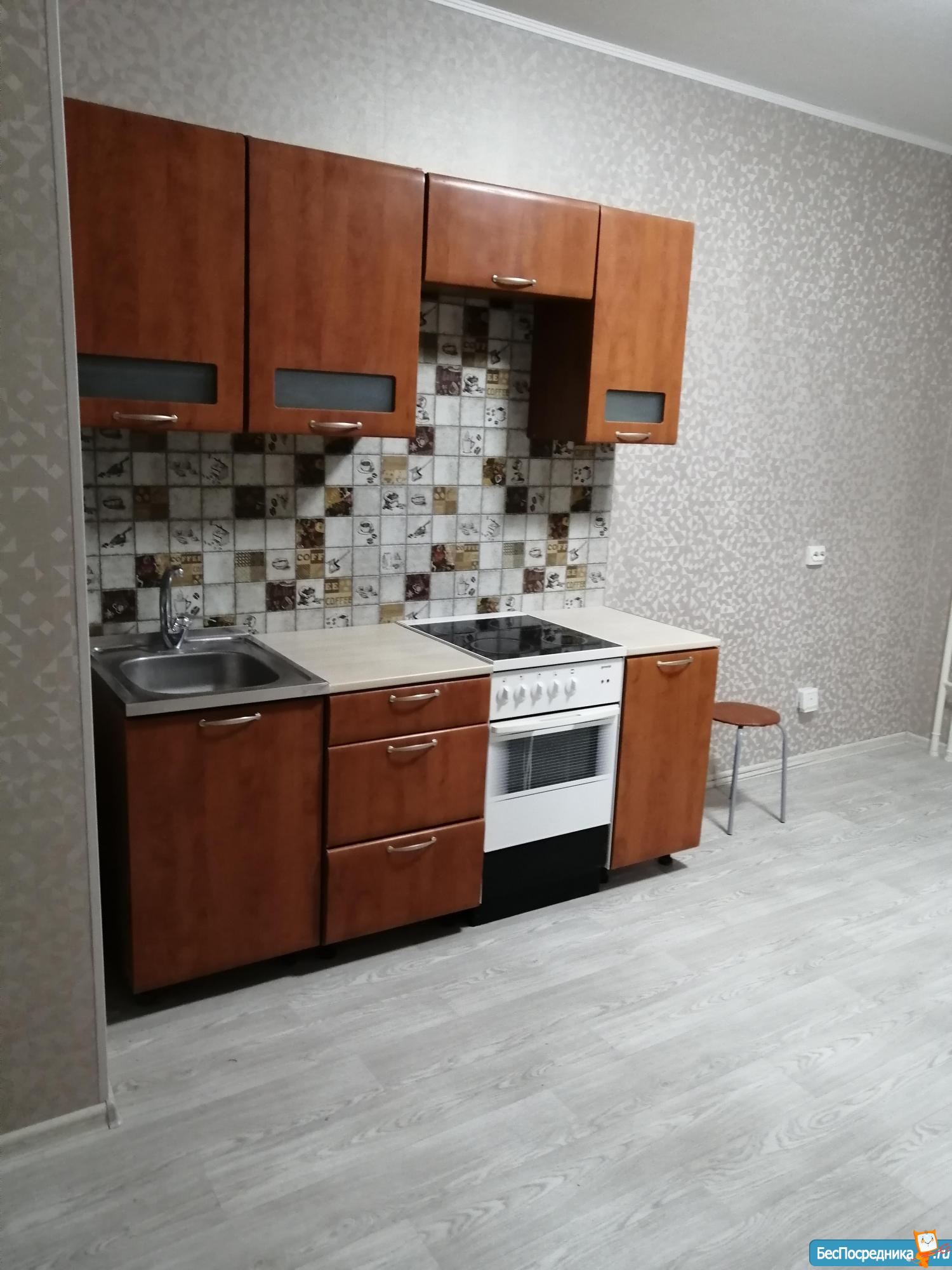 В квартире из мебели диван и кухонный гарнитур.