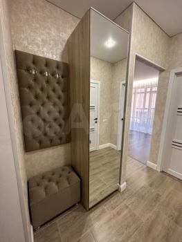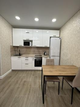 Квартира полностью новая, никто не жил, ремонт полностью готов, но отсутствует кухня. она в пути, готовы сдать после марта, мебель полностью. новая, также и электроника. новая, Ремонт сделан в современном стиле, ремонт был закончен неделю назад.проект старый , а точнее убрана перегородка где маленький Санузел, Теперь она соединена с залом.30т рублей на длительный срок