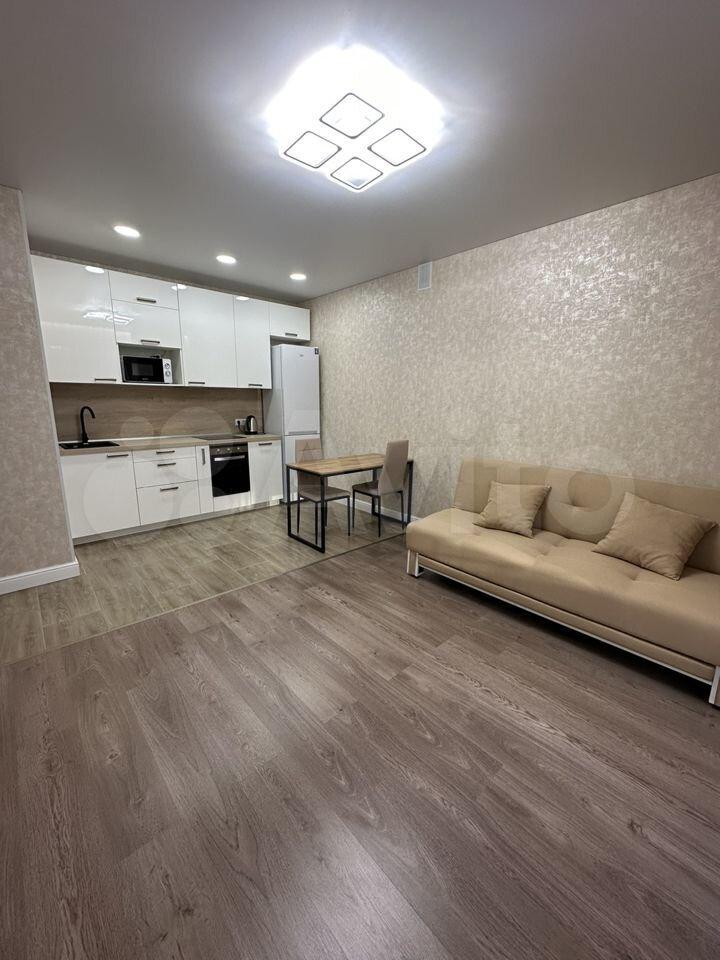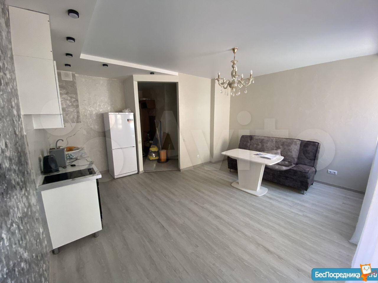 Сдам студию от собственника в новом доме, вдалеке от шумных трасс, но с развитой инфраструктурой, огорожден. Рядом находится небольшой парк с детской площадкой, в двух шагах автобусная остановка, также, не далеко остановка трамваев. В соседнем дворе детский сад, школа в 5 минутах ходьбы. Парковочные места есть всегда. В квартире выполнен качественный ремонт, сдается впервые. В студии есть вся необходимая мебель и техника, также есть ЖК телевизор с поддержкой smart и интернет (оплачивается арендатором). Оплата электроэнергии и воды по счетчикам оплачивается дополнительно. Залог 5000 рублей (возвращается при выселении).
