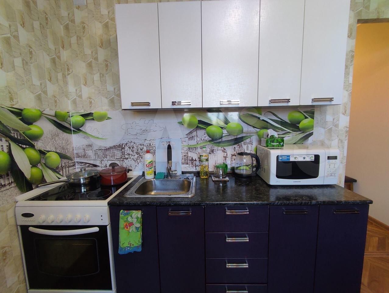В наличии: кухонный гарнитур, индукционная плита (с посудой), диван, стол, стиральная машина.