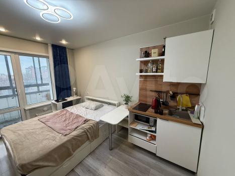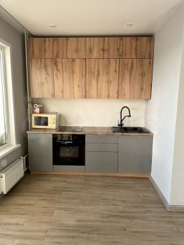 Квартира-студия с новым ремонтом недалеко от линии метро. В наличии стиральная машина, холодильник, микроволновка, телевизор, диван, встроенная плита, Сдача на длительный срок.