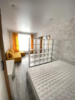Вся техника и мебель! Выполнен стильный качественный ремонт. В квартире большая 2 х спальная кровать , а также большой раздвижной диван. В комнате идет зонирование на спальню и гостиную.