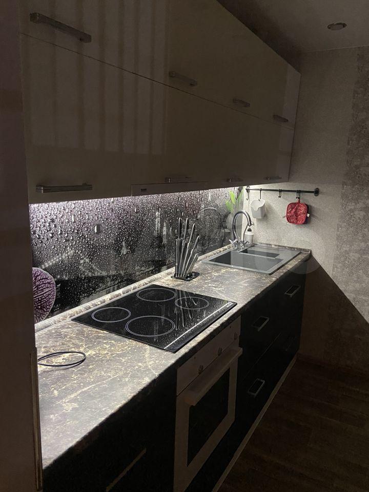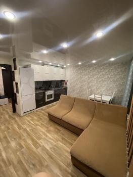 В квартире выполнен светлый косметический ремонт, установлены сенсорные выключатели. В квартире только самое необходимое: плита, холодильник, стиральная машина, мебель для хранения (комод, шкаф-купе в коридоре), обеденный стол с табуретками, диван и кухонный гарнитур.