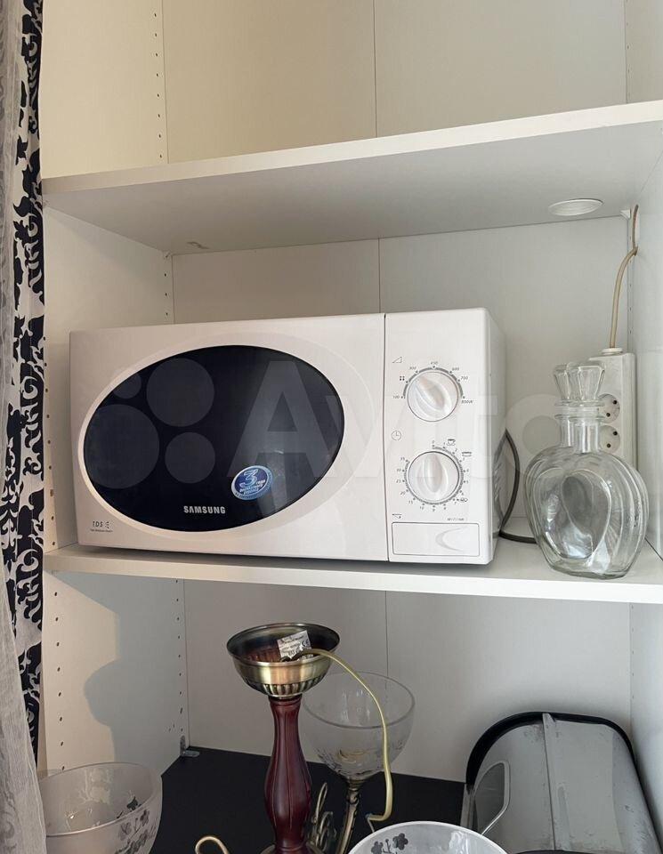 холодильник, плита, микроволновка, стиральная машина, телевизор.