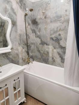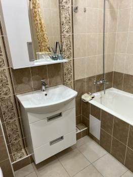Квартира полностью готова для комфортного проживания. Выполнен современный ремонт, в наличии вся необходимая мебель как на кухне, так и в комнате. Просторная кухня площадью 14 кв. м оборудована холодильником и другой необходимой техникой. В комнате есть телевизор, создающий атмосферу уюта и домашнего тепла. В ванной комнате установлена ванна и стиральная машина, что делает быт комфортным и удобным.