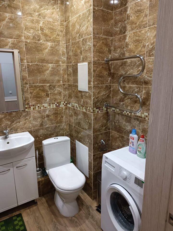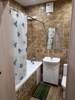 В квартире есть всё необходимое для комфортного проживания. Сделан косметический ремонт. На кухне и в комнате установлена мебель, также есть холодильник и стиральная машина. Санузел совмещённый, оборудован ванной.