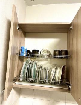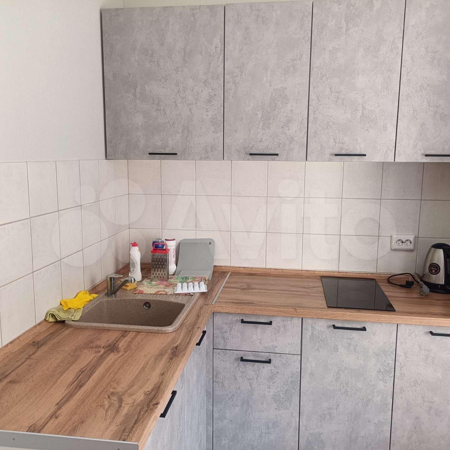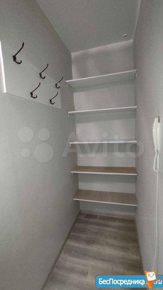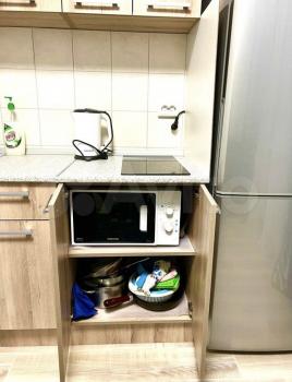 В квартире есть кухонный мини-гарнитур, варочная панель, духовка, стол, и лавки из натурального дерева для трапез всей семьи. В зале большой шкаф для хранения всех вещей. В коридоре также сделана система стеллажей. Есть диван. НЕТ Холодильника и стиральной машины, тк кто-то заезжает со своим. Но все модно купить и поставить.