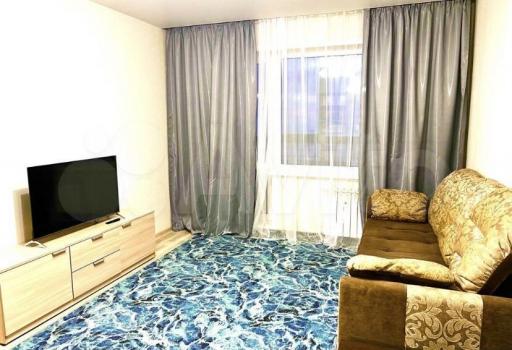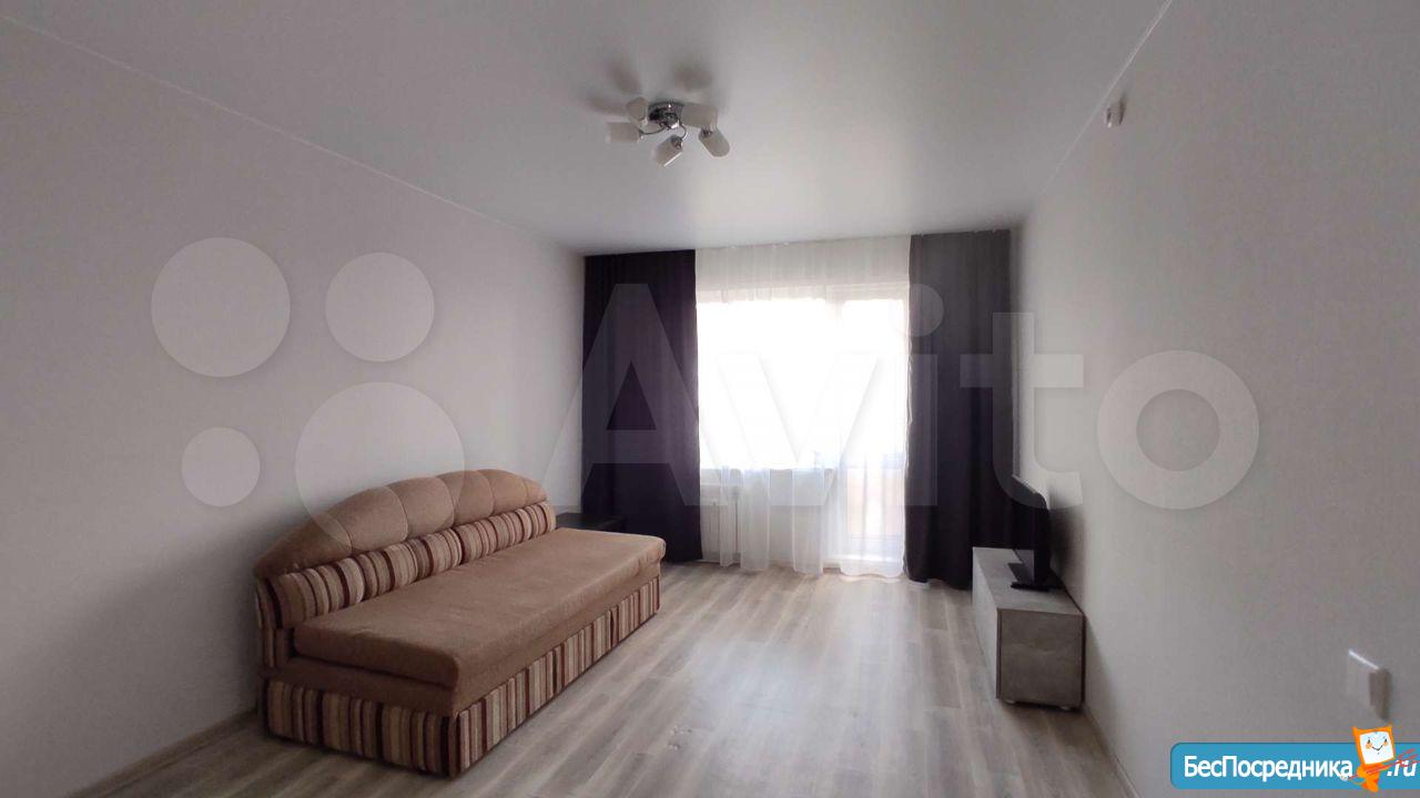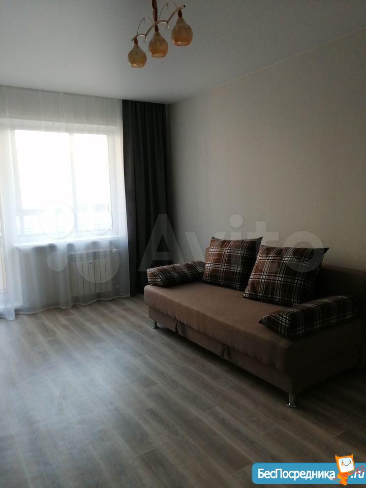 Сдается чистая и светлая однокомнатная квартира со всем необходимым для жизни (мебель, бытовая техника) в новом доме.