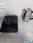 Кухня, плита, холодильник, стол.