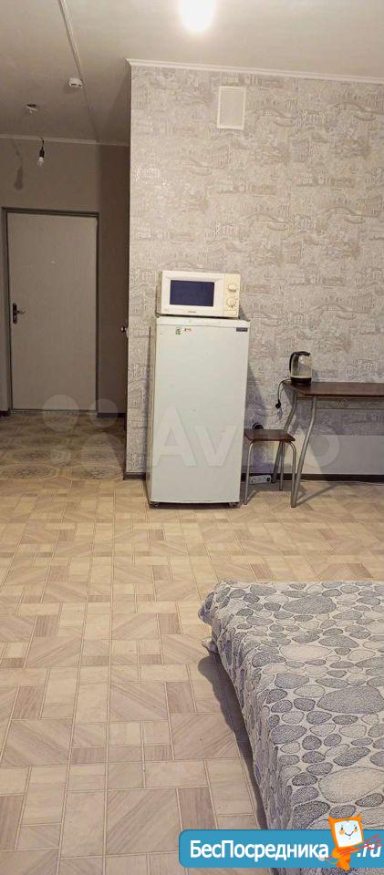 Сдам уютную квартиру-студию. В квартире имеется всё необходимое для проживания: диван, плита, холодильник, микроволновка, чайник, стиральная машина, утюг.