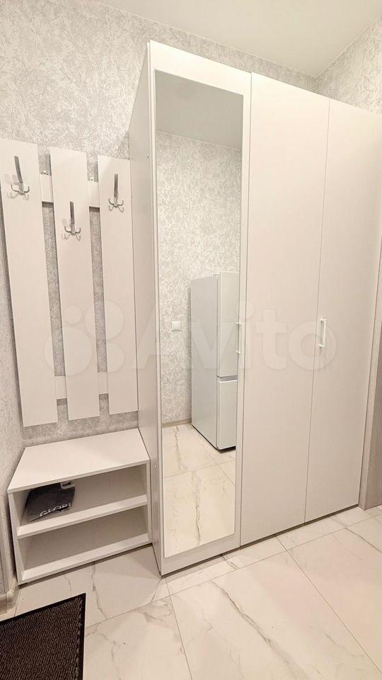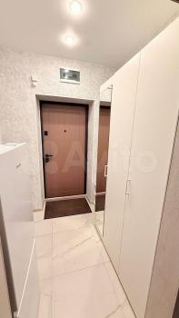 В прихожей есть большой шкаф-купе с зеркалом в пол, очень вместительный.