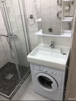 Санузел совмещенный, есть крючки для полотенец, место для хранения, душевая, стиральная машина.