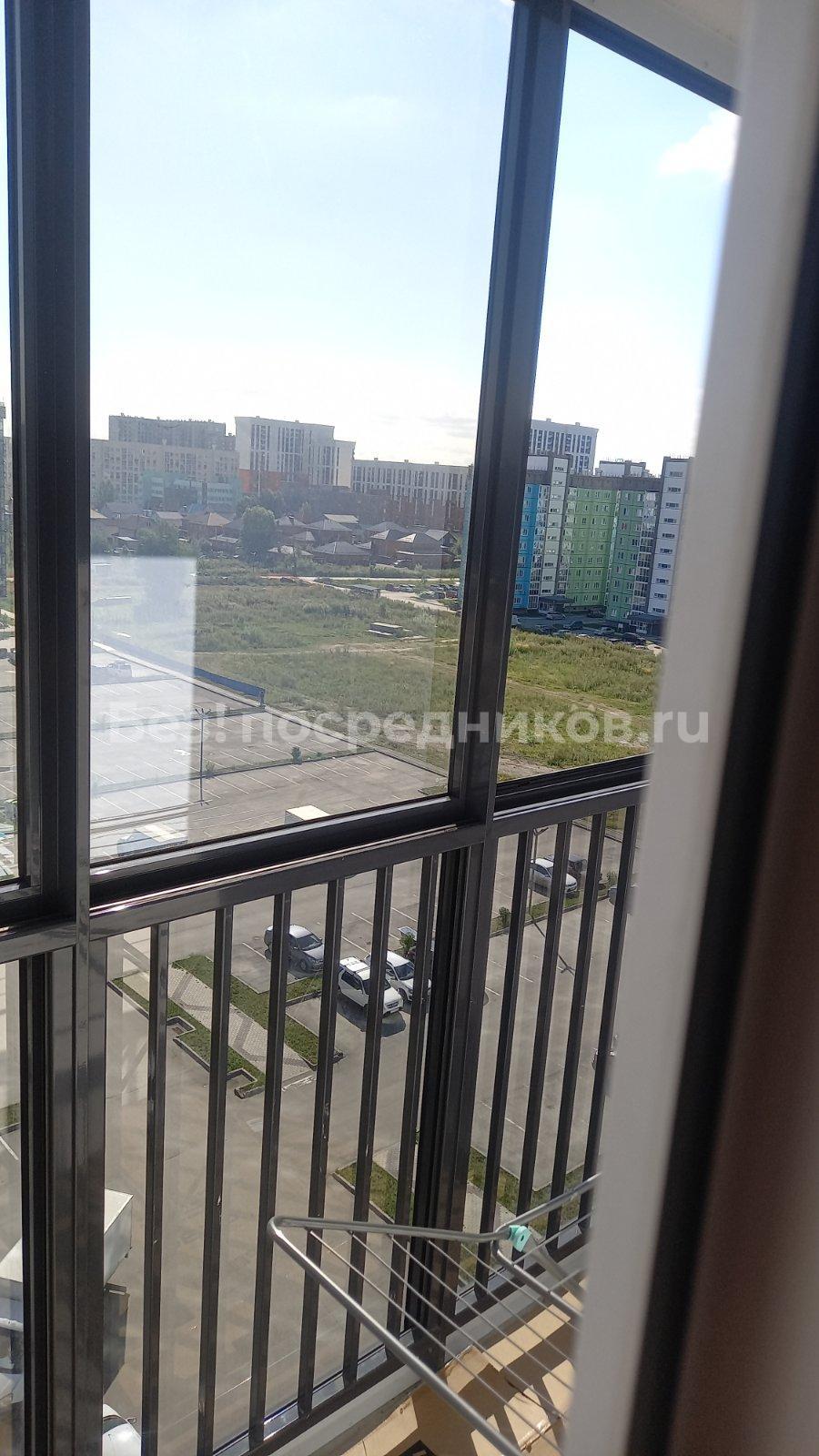 Рядом конечная остановка транспорта. На микрорайоне есть всё: сады, школа, магазины, кафе и т.д. Вид с балкона на панораму города.