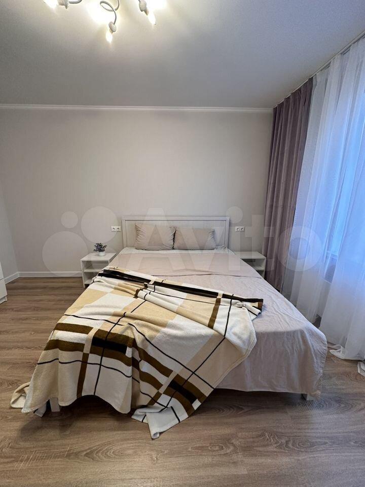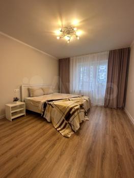 Светлая уютная квартира со всем необходимым для комфортного проживания. Санузел раздельный. Стиральная машина, холодильник, плита, двухспальная кровать, диван, комод. Большая лоджия.