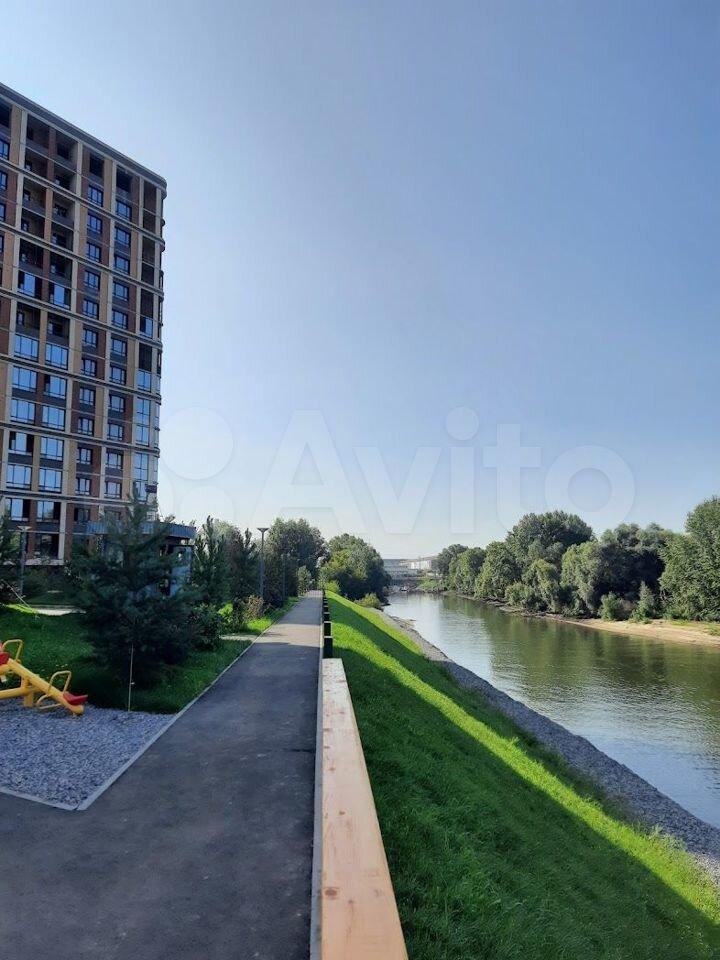 Квартира расположена с видом во двор, на набережную. Летом прекрасный вид на реку, плавают уточки. На территории ЖК имеется большая игровая площадка, набережная, большое количество лавочек на реку, ландшафтный дизайн. Территория вся закрыта забором, замой дорога в ЖК чиститься как дворником, так и техникой.