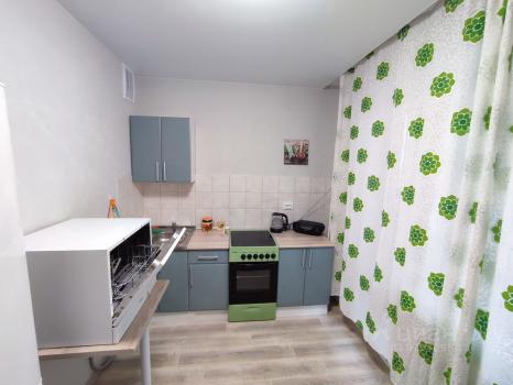Около дома есть большая парковка, благоустроенный двор без машин. Рядом все необходимые магазины, школа, детский сад, а также же автобусная остановка. Окна выходят во двор, поэтому в квартире нет никакого шума.