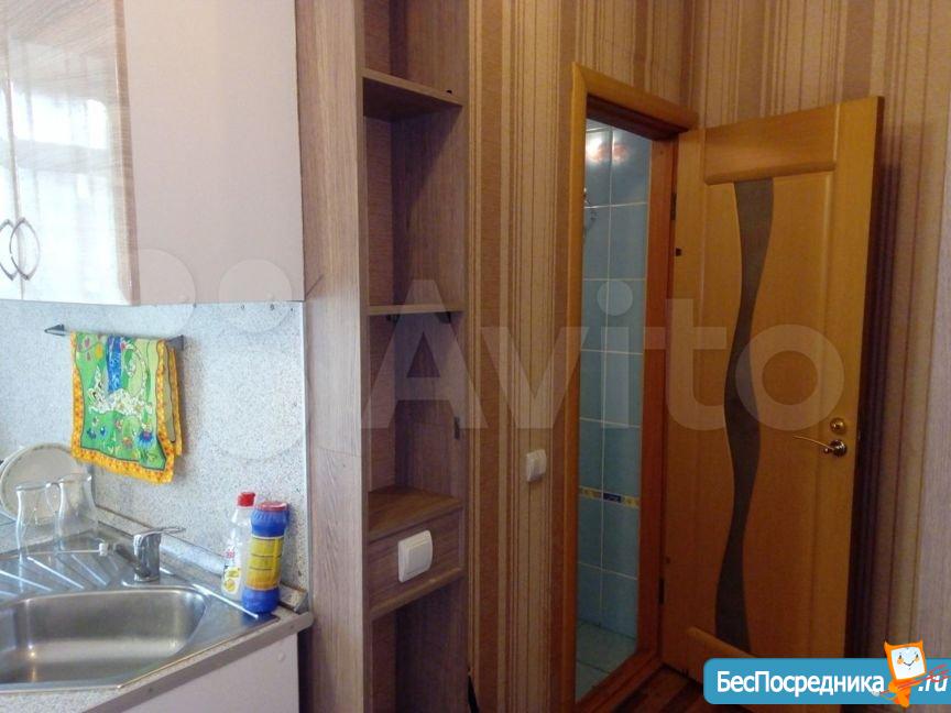 Студия в тихом микрорайоне, рядом детский сад, поликлиника, магазины, аптеки, конечная остановка троллейбуса 29, транспортная развязка удобная, холодильник, микроволновка, плита, диван, могу установить еще один, гардеробная шкаф-купе, комод, стиральная машина, балкон, можно на нем курить