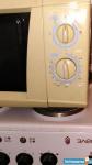 В кухне: встроенный кухонный гарнитур, холодильник, обеденный стол, электроgплита с духовкой, микроволновка, чайник.