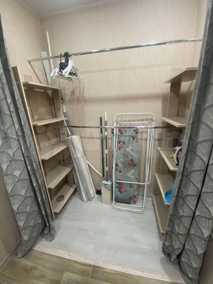- Отделена зона для гардероба - в ней 2 стеллажа, 2ух уровневая штанга с кучей вешалок
