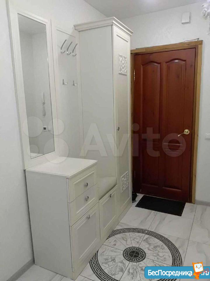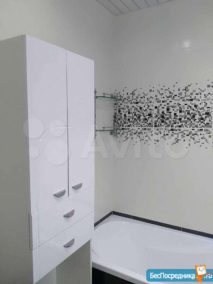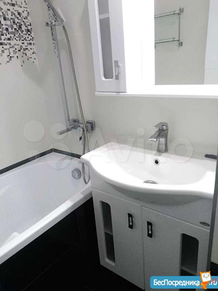 В квартире выполнен качественный ремонт. Есть всё необходимое для комфортного проживания: в зале двуспальный диван, стенка-горка, телевизор. В спальне абсолютно новая двуспальная кровать и большой шкаф. В кухне гарнитур со встроенной варочной поверхностью, новые холодильник и стиральная машина, обеденный стол/стулья. Есть бойлер, на случай сезонного отключения горячей воды. В ванной комнате качественная новая сантехника, тумба под раковиной и шкаф. В прихожей тумба с зеркалом и шкаф для одежды. Остекленный балкон, обшитый деревом.