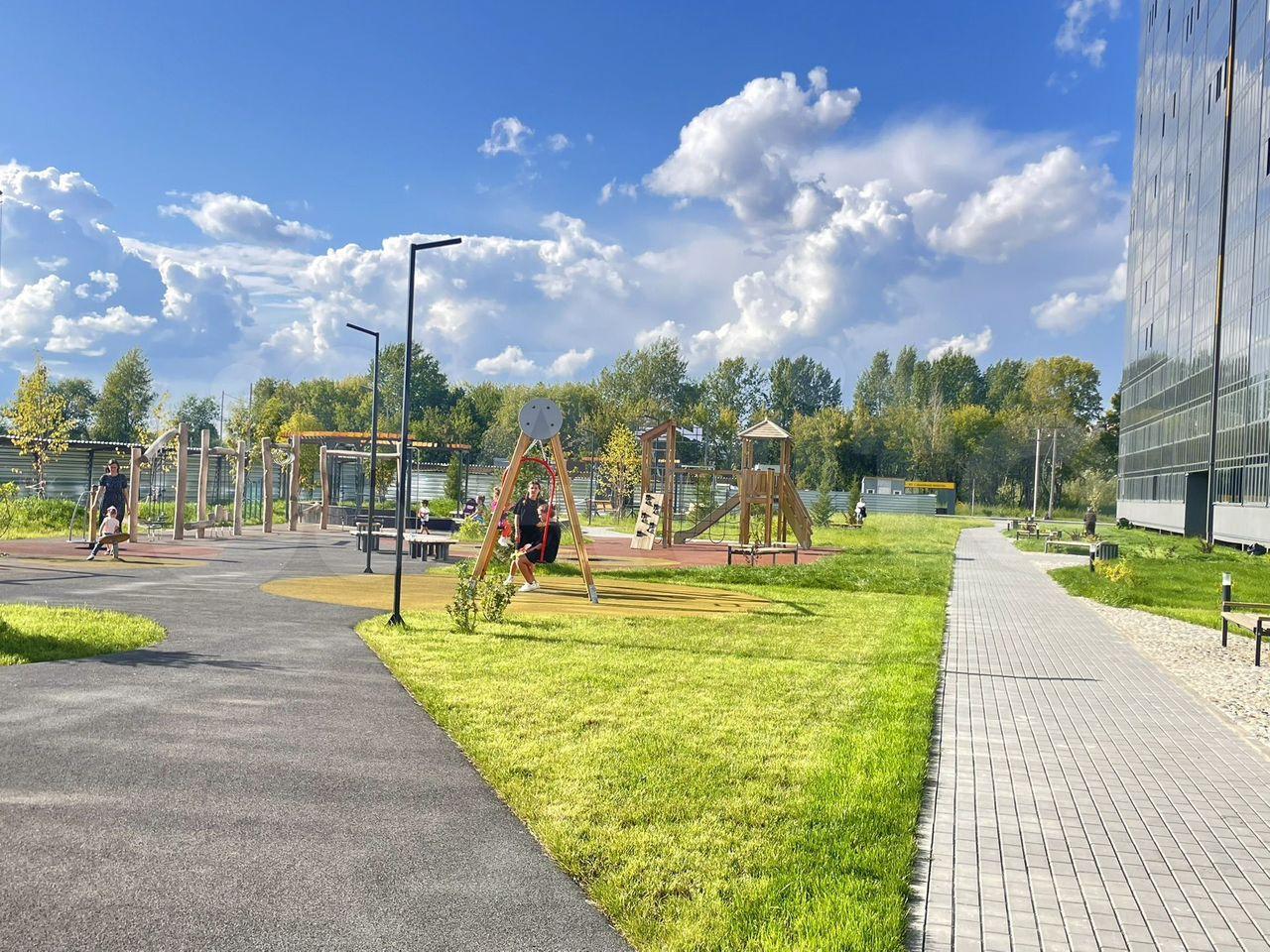 Двор без машин (выход на детскую и спортивную площадку сразу из подъезда, в двух других подъездах придется обходить).