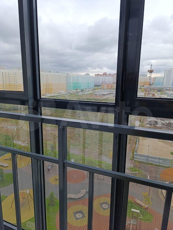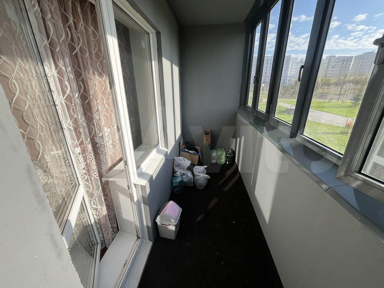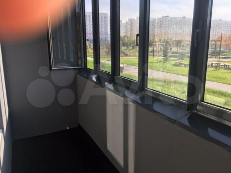 Большая панорамная лоджия. Окна выходят на новую благоустроенную детскую площадку, зону отдыха с качелями и беседками, баскетбольной поле.