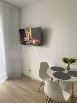 Сдача квартиры от собственника без посредников. Чистая, светлая квартира. Есть шкаф для хранения вещей, обеденный стол и стулья, диван и постельные принадлежности, полочки для мелочей и телевизор, висят шторы блэкаут, оборудована кухонная зона, стиральная машина и сушилка для белья, пылесос.