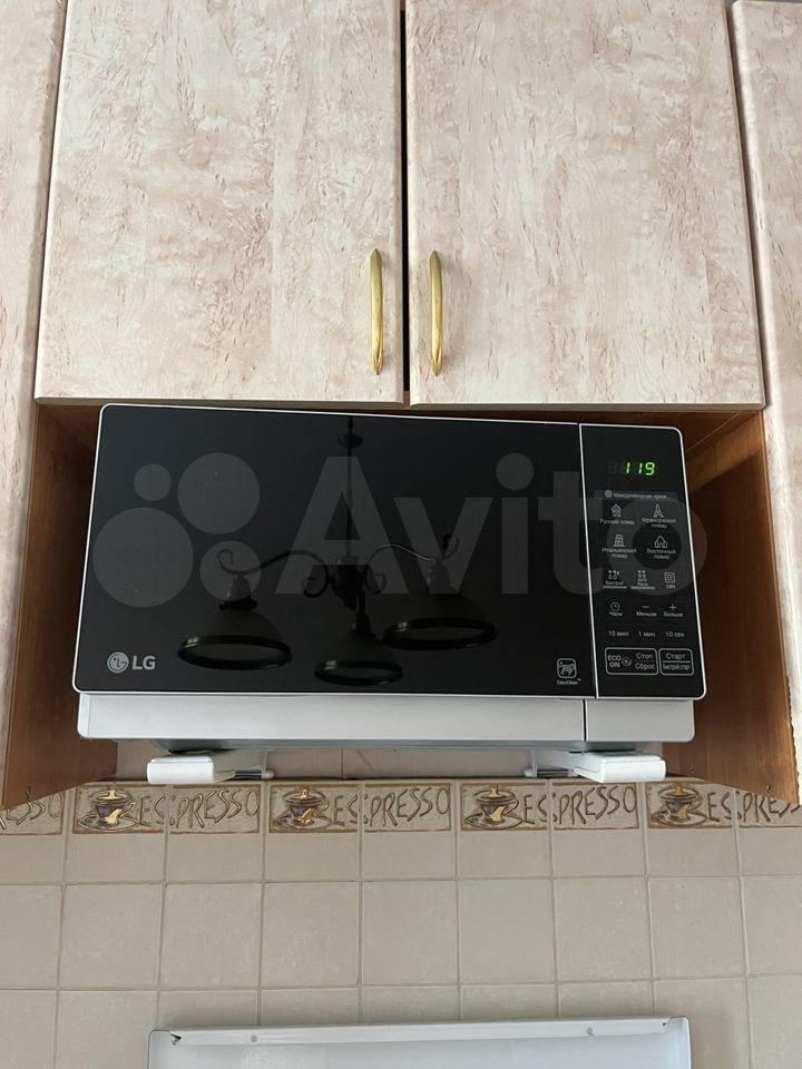 Холодильник, электрическая плита, чайник, микроволновка, стиральная машинка автомат, небольшой телевизор на кухне, кондиционер, утюг. Минимальный набор посуды на кухне)