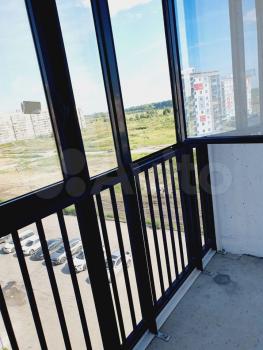 Лоджия застекленная с видом во двор и на парковку.
