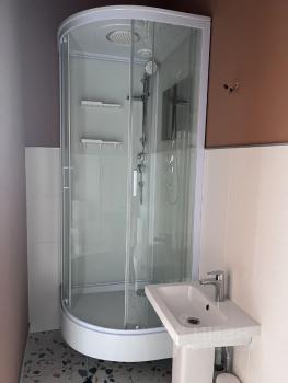 В квартире сделан косметический ремонт, есть кондиционер, холодильник, кухня (вместо плиты - конфорка), кондиционер, бойлер и стиральная машинка.