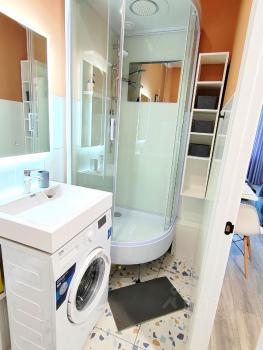 В квартире сделан косметический ремонт, есть необходимая мебель и техника для комфортного проживания: холодильник, телевизор и стиральная машина. Планировка студии позволит вам эффективно использовать пространство. Ванная комната оборудована душевой кабиной.