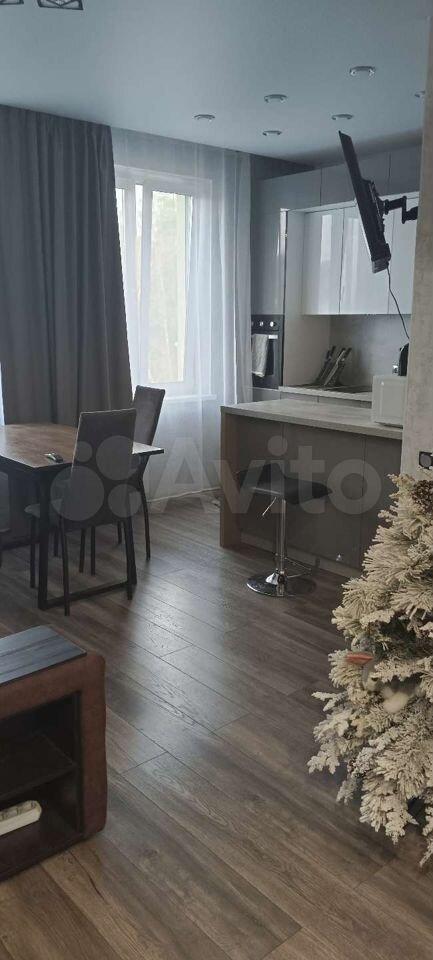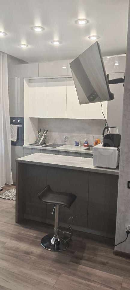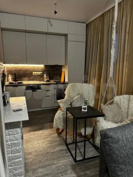 Двухкомнатная студия (спальня и кухня-гостинная). В квартире есть всё, кондиционер, посудомойка.