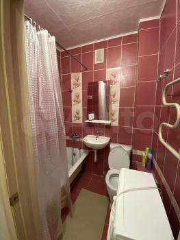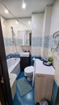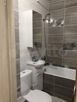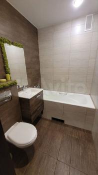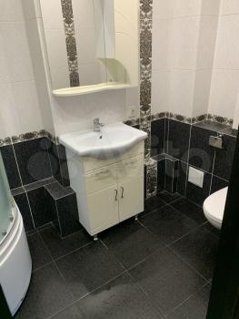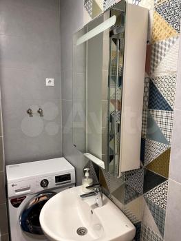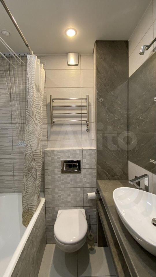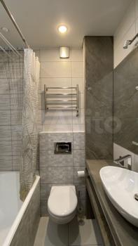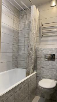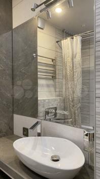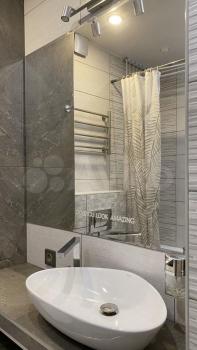 * Совмещённый санузел с электрическим полотенцесушителем и большим зеркалом.