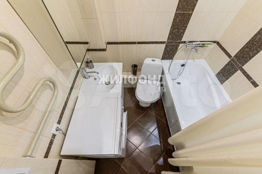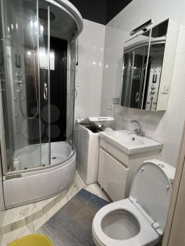 •Совмещённый санузел с электрическим полотенцесушителем и большим зеркалом.