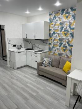 Сдам лично однокомнатную студию (новый дом, никто не жил). Отличный дизайнерский ремонт. Есть все необходимое для проживания. Комплектация мебелью и техникой. Остановка общественного транспорта в 2 минутах. В окружении 100 метрах много продовольственных магазинов, пункт выдачи WB. Минимальный срок сдачи - 11 месяцев. Оплата по счетчикам оплачивается отдельно.