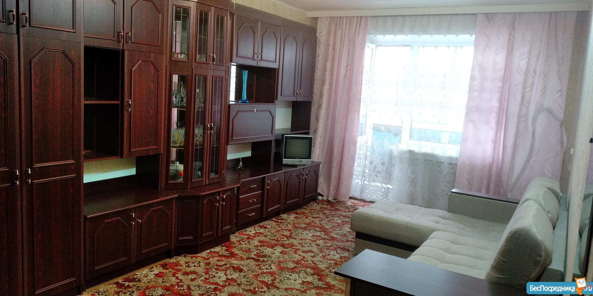 В двух комнатах есть спальные места. (Они раскладываются). Есть плита, микроволновка, холодильник, вместительный шкаф, комод. Удобная и приятная ванная комната. В квартире зимой тепло, летом прохладно. Сейчас в ней сделан косметический ремонт, проведена сан. обработка, отсутствуют посторонние запахи. После ремонта в ней никто не жил.