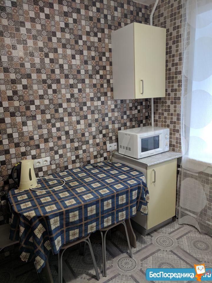 Квартира укомплектована мебелью. Стенка, диван (спальное место 80/140х200 см), кровать (160х200) холодильник, духовой шкаф, печь, микроволновая печь, ТВ, утюг и т.д.
