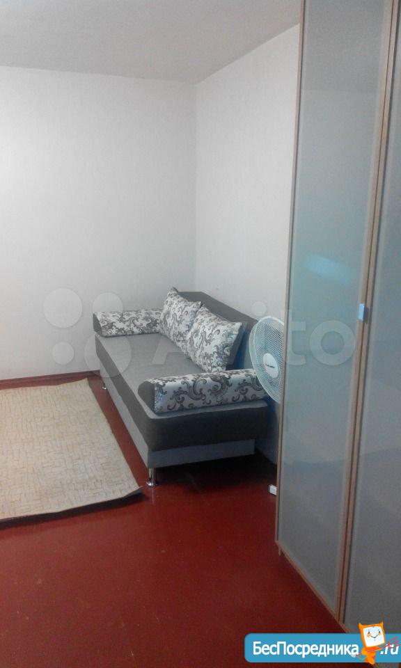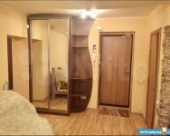Жилая комната светлая и просторная, с большим окном и выходом на застеклённую лоджию. В комнате новый удобный диван. Из мебели также имеется вместительная гардеробная.