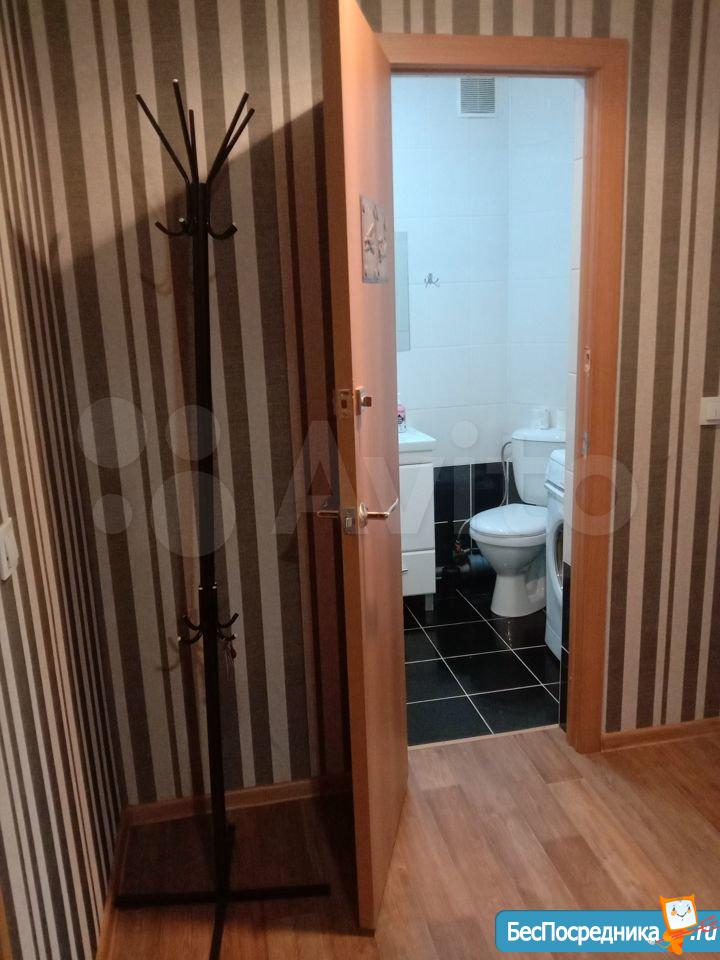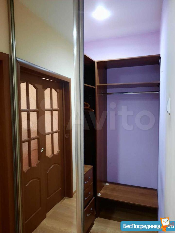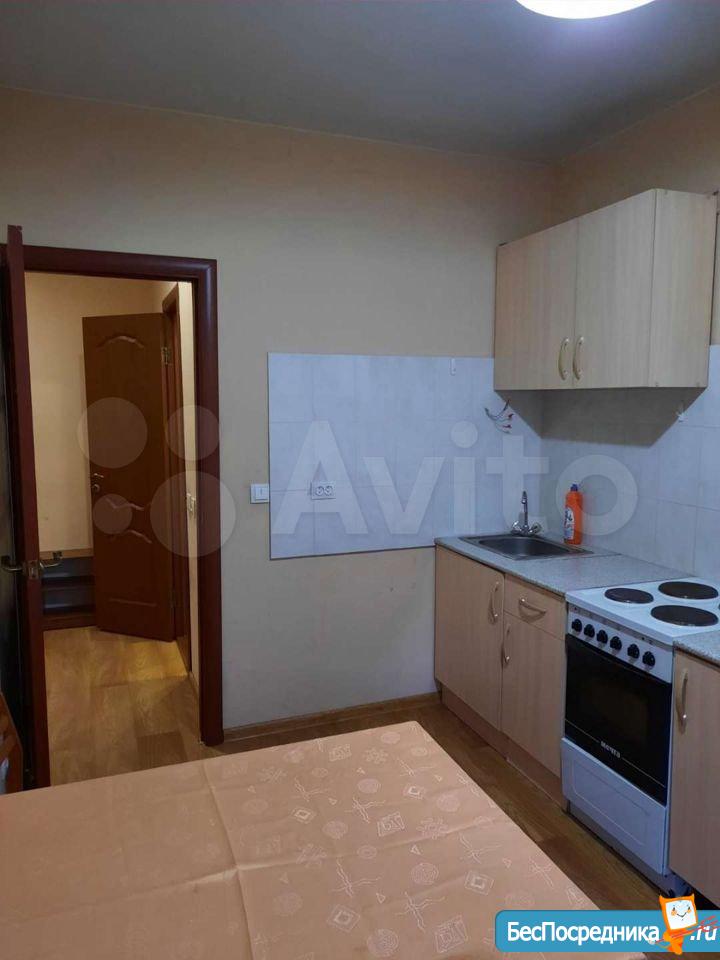 Сдам 1-комнатную квартиру на длительный срок. В квартире есть кухонный гарнитур, плита, холодильник, диван, большая встроенная гардеробная. Стоимость - 15000 р. в месяц + коммунальные услуги по счетчикам.