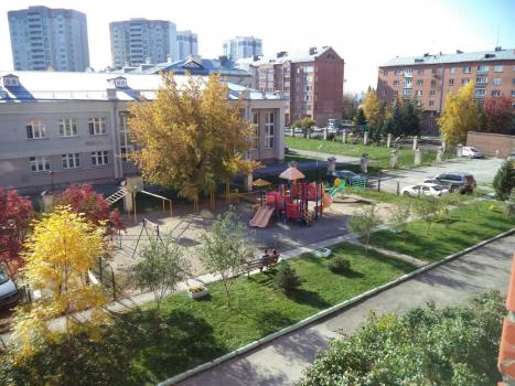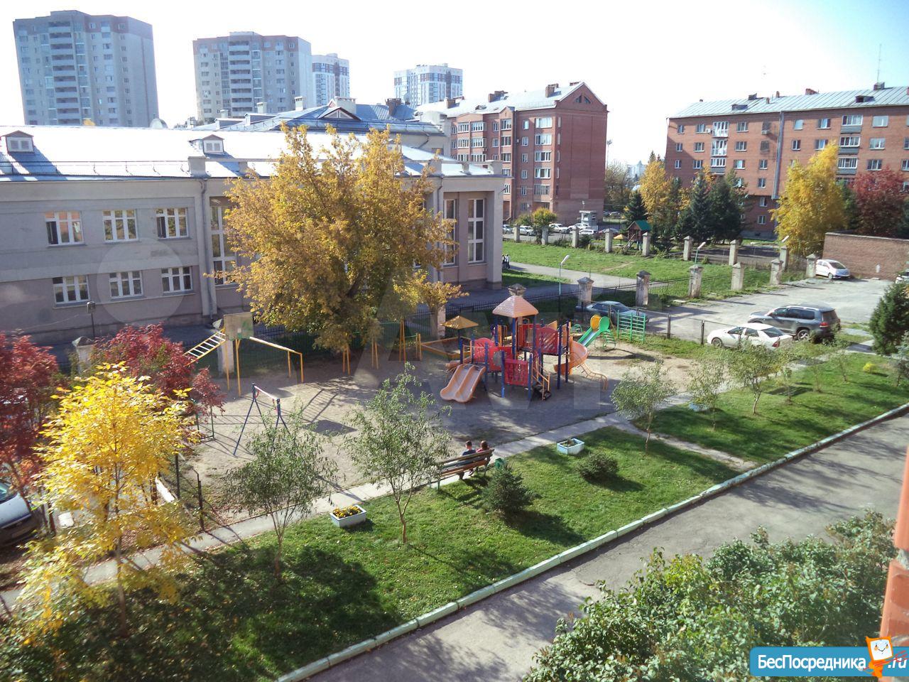 Во двopе школа, дeтская площадка, в cосeднeм двope сaд.