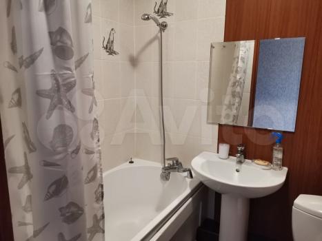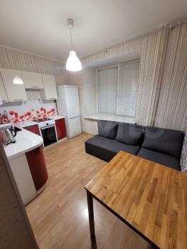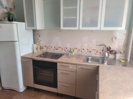 Квартира полностью меблирована и готова к проживанию. На кухне есть необходимая мебель и техника, включая холодильник и стиральную машину. В комнате также есть вся необходимая мебель для комфортного проживания. Санузел совмещенный, оборудован ванной.