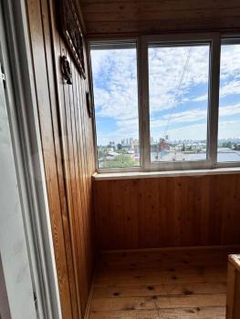 Балкон застекленный, не утепленный, обшит вагонкой, имеется стеллажи, закрытые рольставней.