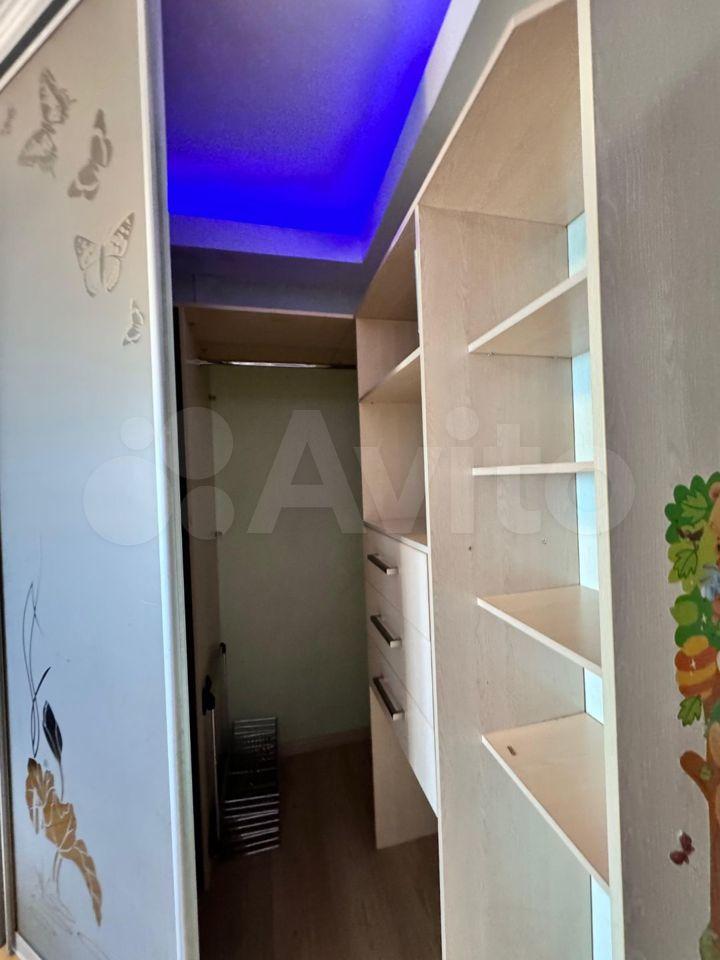 Главная фишка этой квартиры-огромная гардеробная, отдельная комната, где можно разместить все вещи и шкафы не нужны.