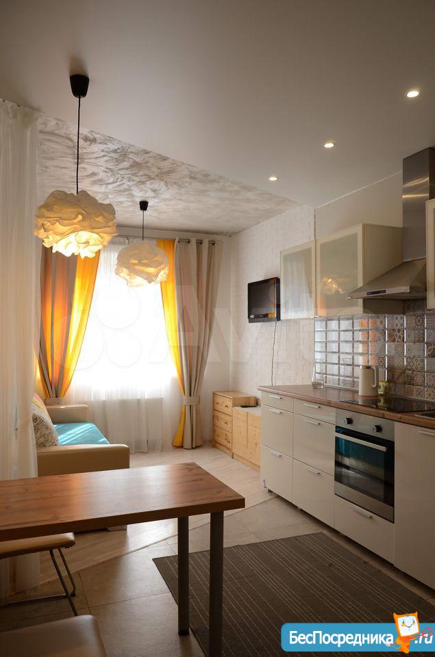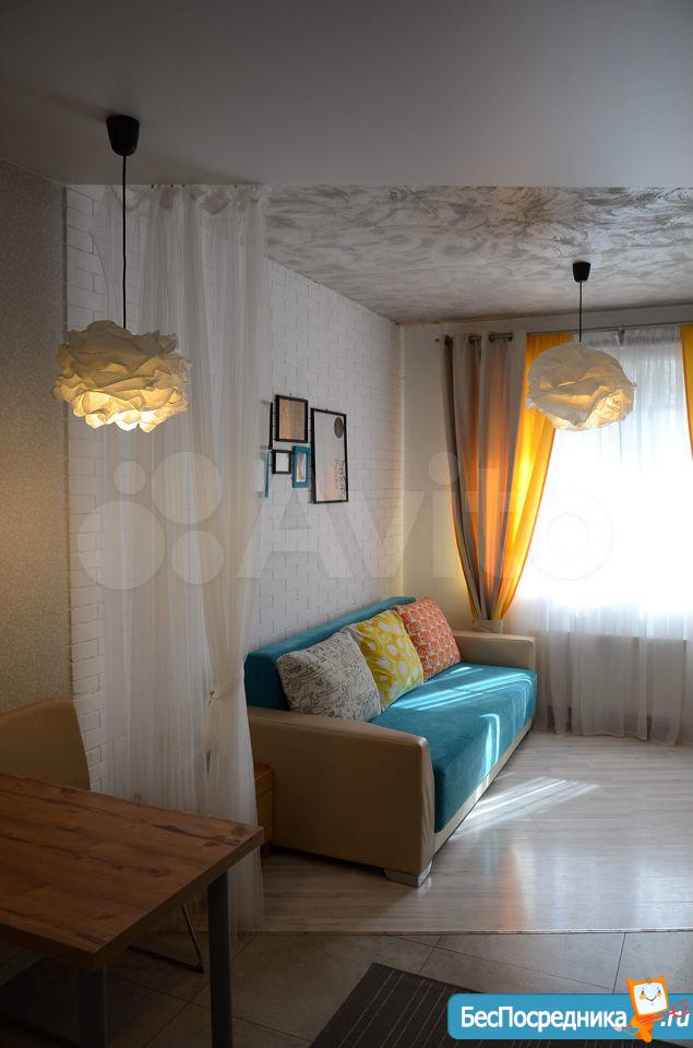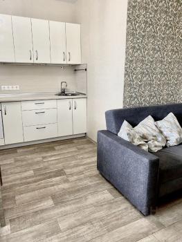 Евродушка-студия с выделенной отдельно спальней, кухней-гостиной.