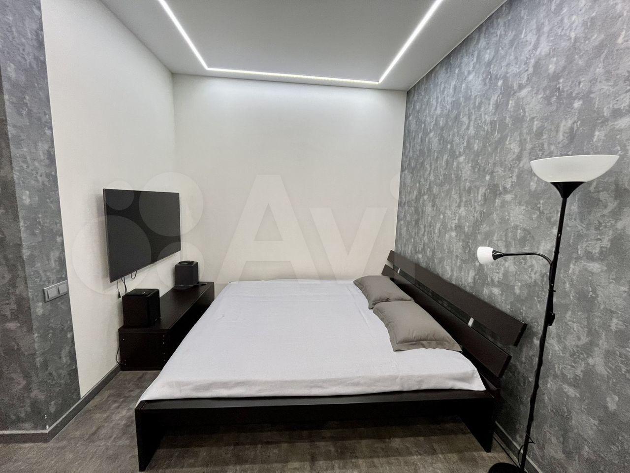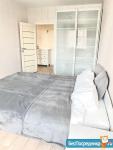 В спальне кровать с ортопедическим матрасом, шкаф для хранения одежды, в прихожей вместительная гардеробная, в кухне-гостиной диван и телевизор, вся необходимая техника, стол на 6 персон.