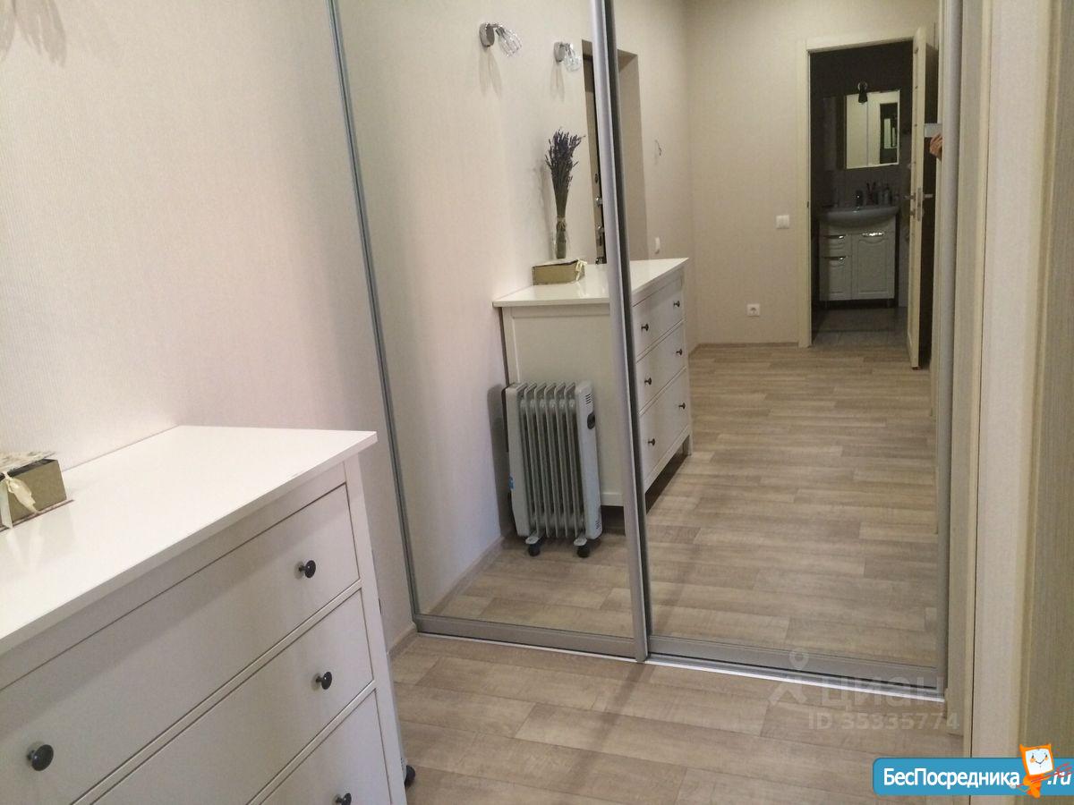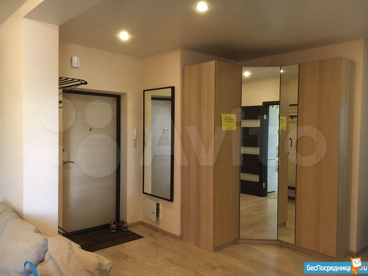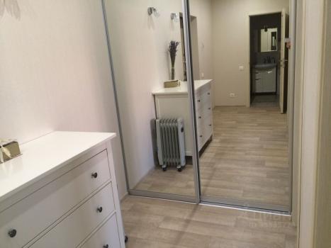 В прихожей вместительный зеркальный шкаф-купе.
