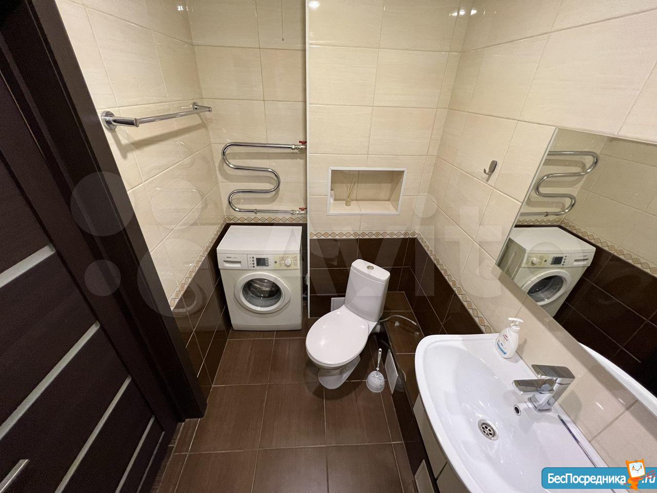 В квартире есть два санузла, большой встроенный шкаф, спальная с кроватью на 160 см, в зале расположен большой раскладной диван. Вся мебель в отличном состоянии.