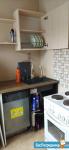санузел - совмещённый, мебель - кухня, хранение одежды, спальные места, холодильник, плита, стиральная машина.