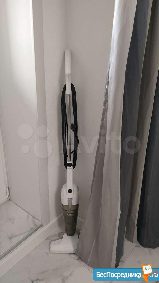 Квартира с хорошим ремонтом. Имеется вся необходимая мебель и бытовая техника: кухонный гарнитур, стол(нет на фото), 2 стула, раскладной диван, раскладной журнальный столик на колесах, гладильная доска, стиральная машинка-автомат, холодильник, микроволновка.